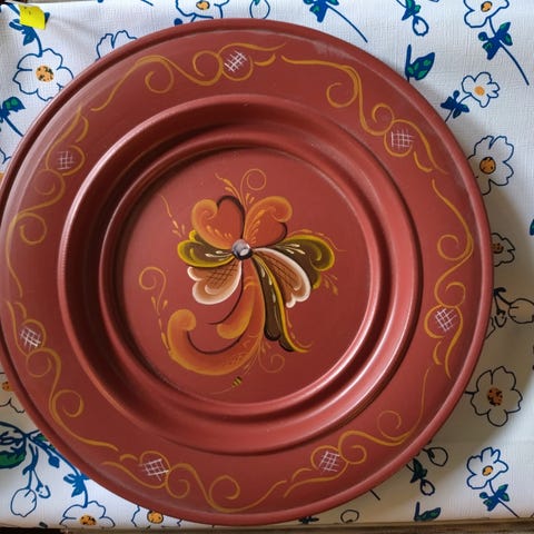 Fin rosemalt treskål med skje. Fin som dekor på hytte