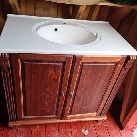 Flott baderomsmøbel i hvit farge - Hovedkabinett, vask og speil selges billig. Utgått modell selges derfor til under halv pris. Selges privat - kan sendes i hele landet, frakt må da betales for dette. Les mer om tilsvarende produkt her: https://www.sparmax.no/modenidesign-baderomsinnredning-80-cm-hvit-matt