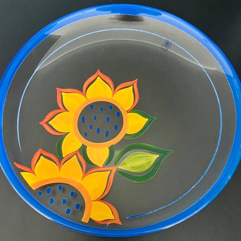 Koppen er ca 5 cm høy, og sitter fast på skåla som er ca 8 cm i diameter.