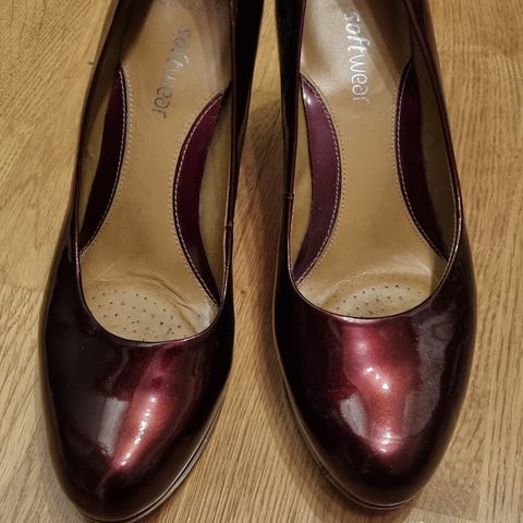 Sølvfarget sko str 40. Brukt en gang. Hælhøyde ca 8 cm.