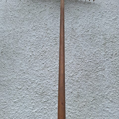 Har en gammel horv for hest til salgs. Horven er korrodert med overflate rust som i svært liten gra har tæret noe særlig på metallet. Den har tre håndtak. Horven vil være perfekt som restureringsobjekt for å ha til pynt i f eks. et gårdsrom