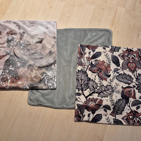 Selger fire putetrekk for 25 kr pr stk, eller 80 kr samlet. Nyvasket, knapt brukt.