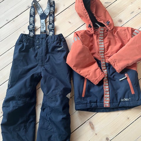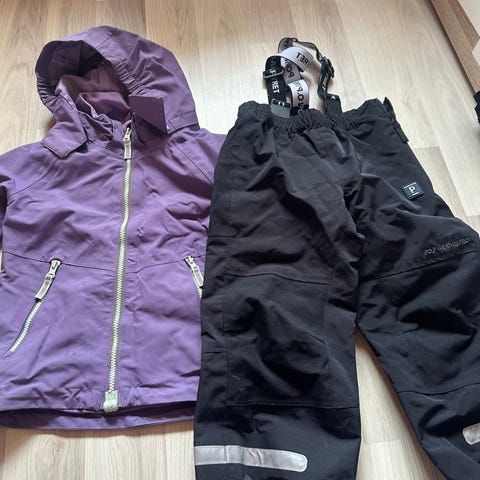 Selger et sett med utebukse og jakke fra Skogstad i str 3 år. Buksen har noen bruksmerker og slitasje nederst på beina (se bilde). Jakken er i god stand.