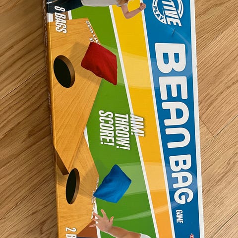 Gammelt, lite rimgkast med 5 blå kasteringer. 21 cm. Kan demonteres.
