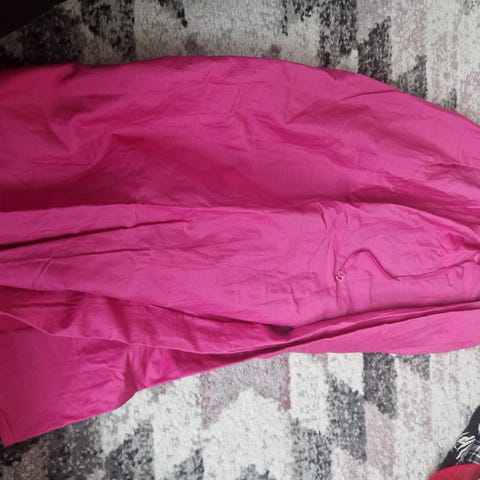 Behagelig og festlig sommerkjole i sterke farger. Har vært en fargerik favoritt i skapet. God og myk bomull. Rekker til midt på låret. Vid passform, men legger seg fint. Hemper i front på det svarte partiet som kan åpnes.