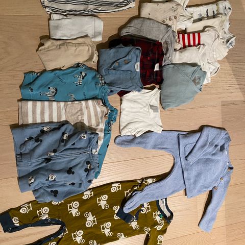 Klespakke i størrelse 68. Se bilder for pris. Hvis bilde eller pris er fjernet, er plagget solgt.