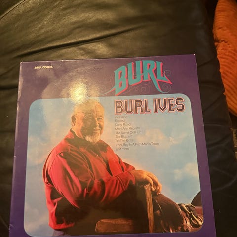 Burl Ives World of Burl Ives vinylplate i 12-tommers format. Denne LP-en inneholder en samling av sanger fremført av Burl Ives. Omslaget viser et portrett av artisten. Vinylplaten er designet for avspilling på platespillere og passer for musikkelskere som samler på klassiske utgivelser. Sender, kom gjerne med bud.