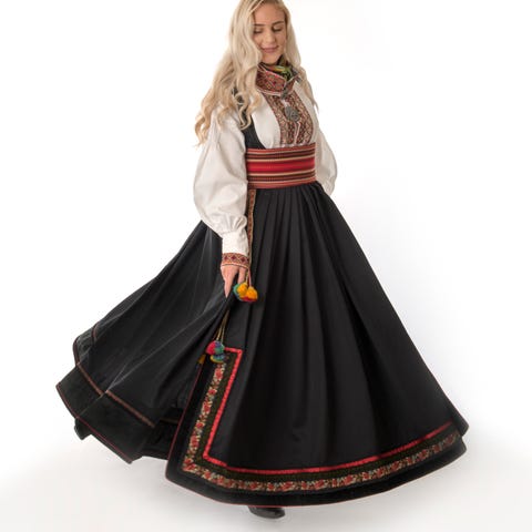 1. Stakk og liv. Stakken er av høy kvalitet sort merinoull er sydd fast til livet. Livet i silkedamask eller 100% ull fra GU med hånd