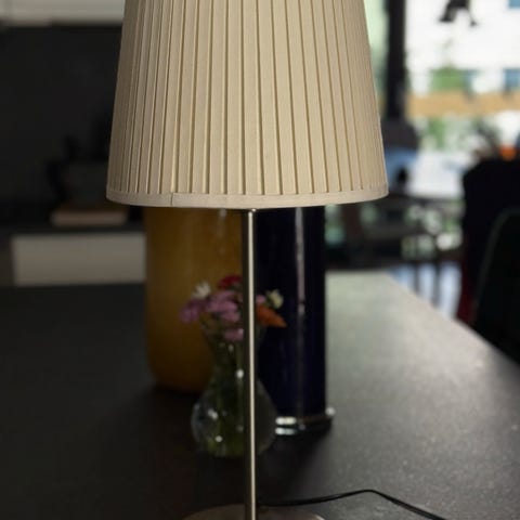 Som nye. Tre «Aneta» lampeskjermer. 2 er i samme størrelse og en er mindre. De største: Høyde 17 cm., diam oppe er 18 cm. og nede >25cm. Den minste: Høyde 13cm., diam oppe er 13cm. og nede 19cm. Festes på lyspære.