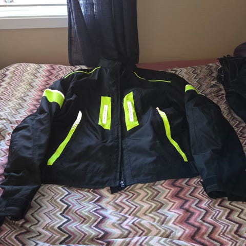Merke jakke og bukse er Spidi. Skomerke er TCX.