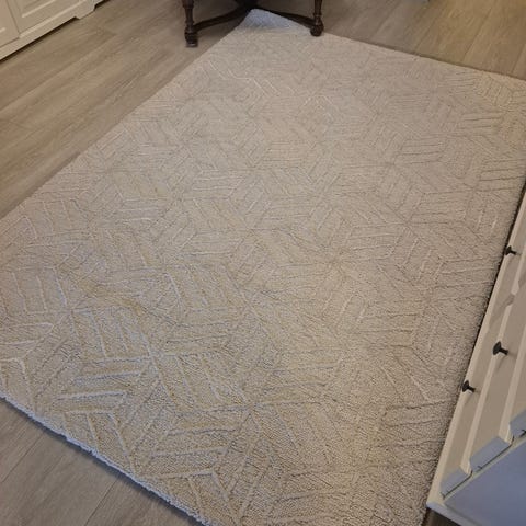 Teppet fremstår som nytt, lagt under spisestue i to måneder. Selges da vi må ha en annen farge til våre møbler både hjem og fritidslgh.