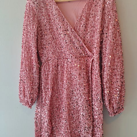 Lys rosa kjole i tynt og lett stoff med fôr.