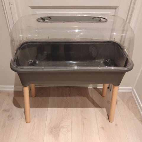 Kjempe fin Nelson spirekasse/drivhus. Finner ingen lingnende denne så kan være den er ute av produksjon. Forenkler såing og omspiring. Denne er kjempe praktisk med lufting på toppen