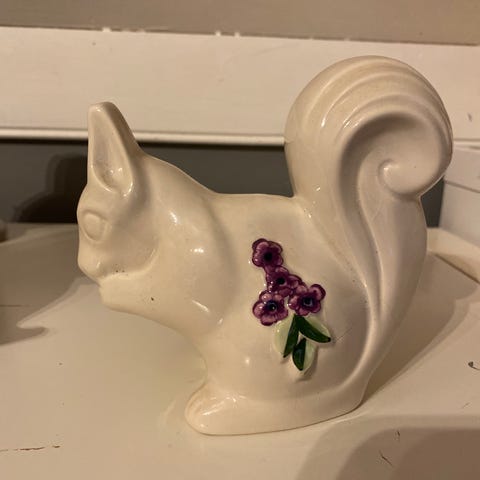 Ca 20 cm høy, ca 13 cm bred. Sender gjerne med posten