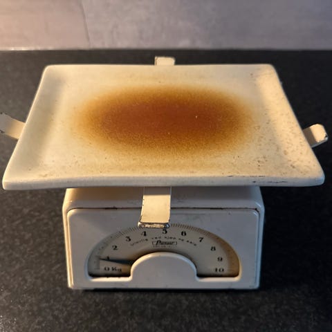 SELGER EN BRUKT PANSER KJØKKENVEKT.VEIER INNTIL 10 KG.OM IKKE HENTES,KAN DEN SENDES.