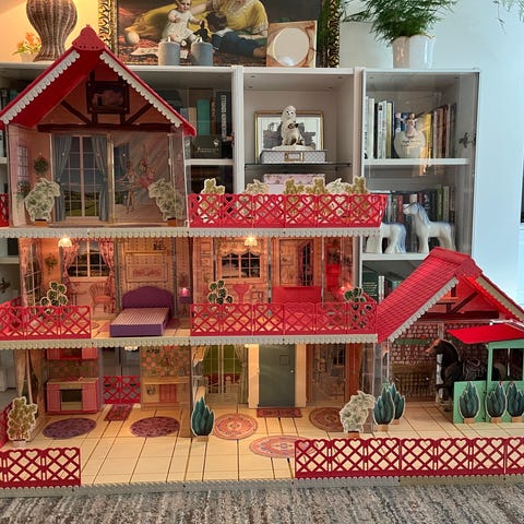 Selger et vintage Playmobil Victorian mansion, fra 1990 (serienummer 5300). Alt av bruksanvisninger og «Rosa’s dagbok» medfølger (se bilde). Fantastisk kvalitet på sofa/stoler og tepper («vokset»). Enestående detaljer, gardiner, tapet, innrammede bilder og bøker og tepper.