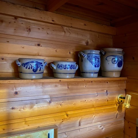 To innvendige hyller bak skyveglassene og en utvendig hylle. Godt ivaretatt