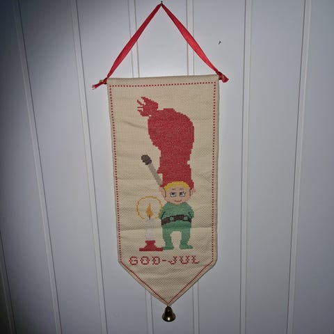 Koselig gammelt oppheng med bjelle til jul. Ca mål 25x60 cm
