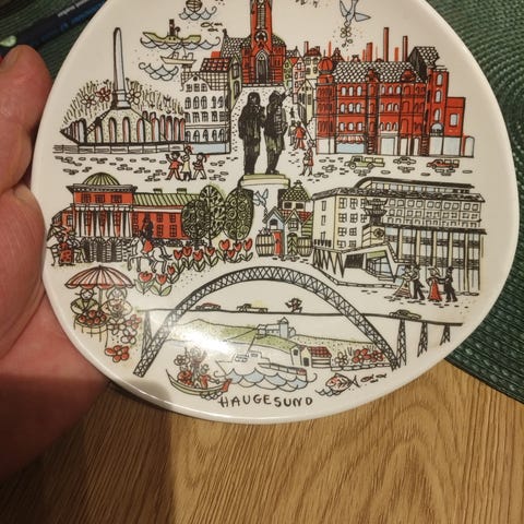 Flotte Haugesund Kruset 1981, med motiv Haugesund Rådhus og Festiviteten.