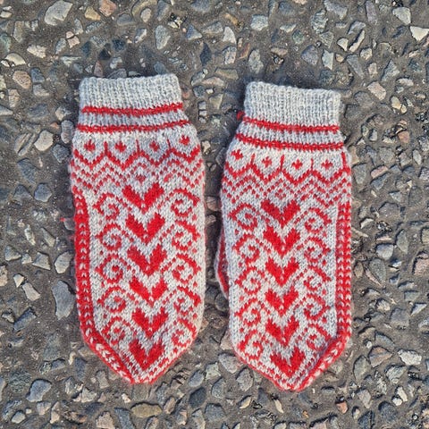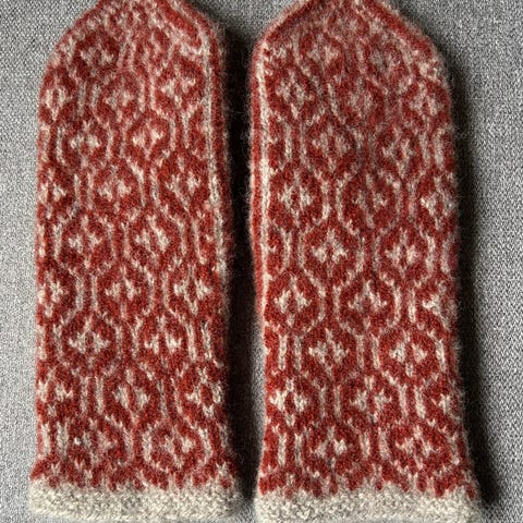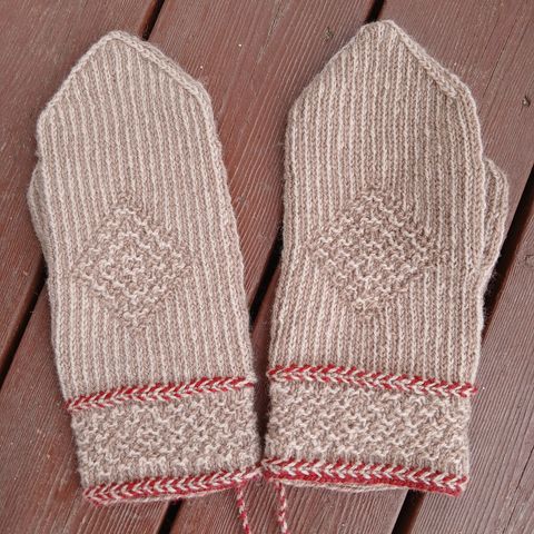 FINE VOTTER i TVEBÅND strikking og nydelig mønster.