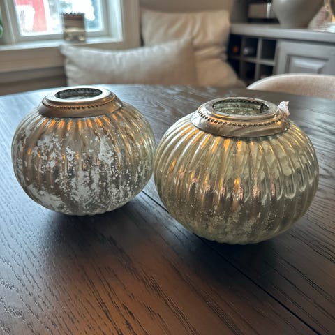 2 stk lysholdere i glass med kurv.