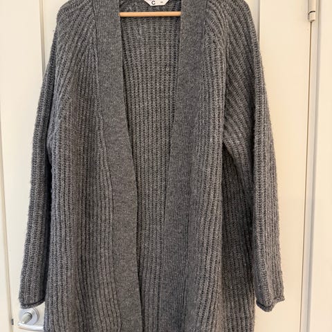 Cardigan fra Cubus i str L selges da den ikke blir brukt. Veldig fin som en oversized cardigan. Den har et lite hull fremme på høyre side som vist på de to siste bildene, ellers i fin stand 😊