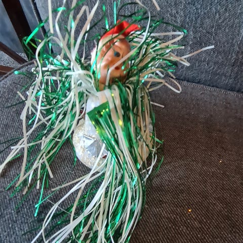 Har flere Antikke Julekuler som jeg selger for en svært fordelaktig pris. I tilegg Spir og disse antikke Folieproduktene, Flagg for juletreet (slik vi hadde i gamle dager) bjeller m.m