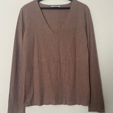 God og romslig genser. «Ull-look» men er 80 % acryl og 20 % ull/mohair, så klør ikke. Brukt ett par ganger