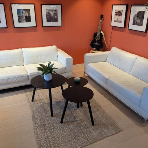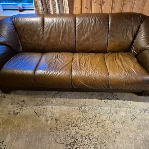 Avbildet uten armlene på ene siden. Dette følger med, men vi bruker sofaen for øyeblikket uten for å få plass under 3 meter i bredden.