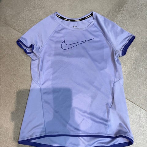 Mørkeblå treningsgenser, Nike dri-fit, små feill (se bilde) men som ikke påvirker bruk.