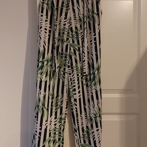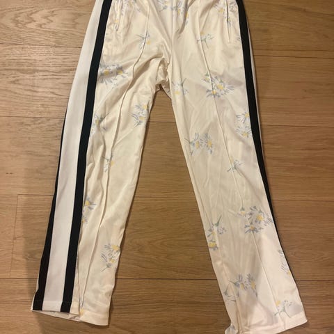 Lett og luftig bukse fra Ganni. Kremhvit med blå blomster. Løs fasong. Str XS, men oppleves som ca S