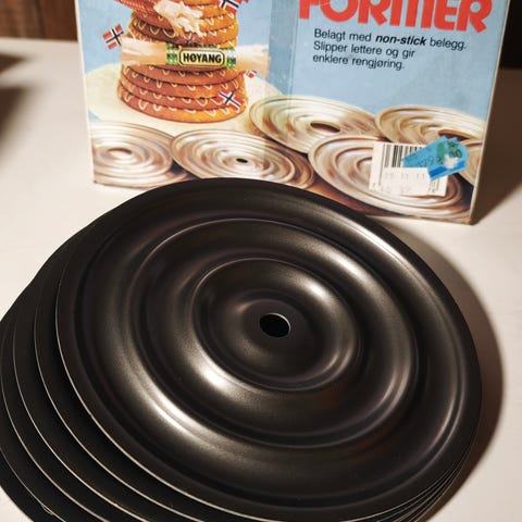 Artig bakesett i to deler fra Hesmer, Tyskland. Diameter 16 cm. Oppskrifter på esken. Noen merker på springformen. Her kan man bake et lite sukkerbrød for eksempel, eller ringkake. For de små kakene, eller for små selskaper!
