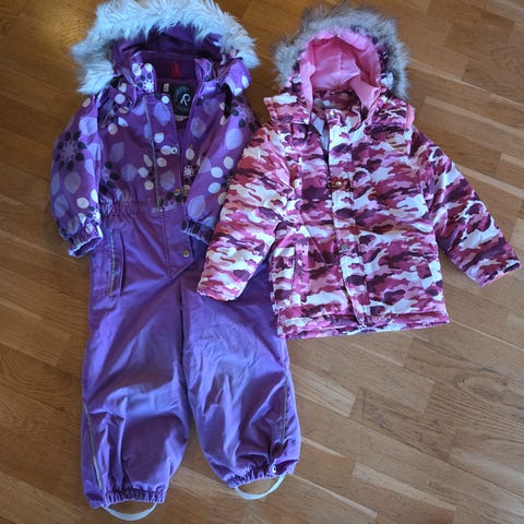 Vinterdress og jakke fra reflex str 86, brukt svært lite, men strikken på det ene beinet har revna litt, se bilder😉legger ved en pomdelux jakke og lue😉 fra dyrefritt/røykfritt hjem😉 kan sendes mot at kjøper betaler frakt😉