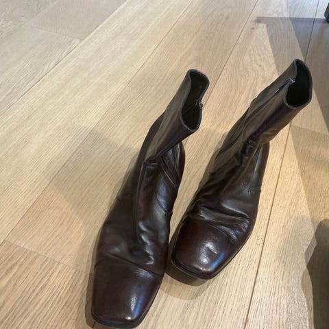 Skolettene er mørk burgunder Flott farge. Kun brukt et par ganger og fremstår som ny! . Str 41. Selges p.g.a ankelskade.