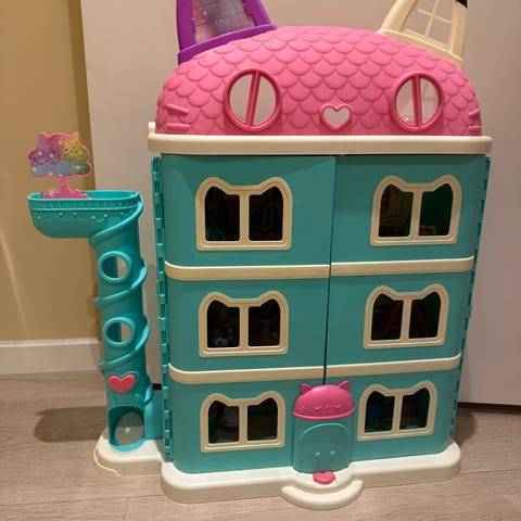 Seng som kan slås opp, 2 stoler, bord, kommode, radio og grammofon, tror jeg. Kan deles opp, alt er av plast unntatt madrass i senga som er av tynn papp. Kan lage egen avtale med kjøper. Sender også som brevpost,