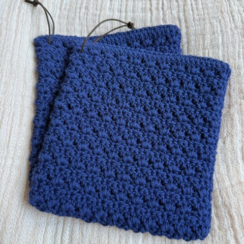 Fine julegaver. Grytekluter, heklet selges 100.kr.par. Kan sendes.