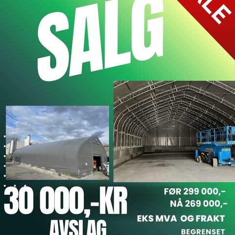 Lagerhall / plasthall 15,2 x 31,7 x 7,9 meter til salgs