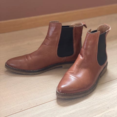 Skoene er i god kvalitet, har lite bruksmerker som ikke får an pusse bort. Skoene har også fine såler.