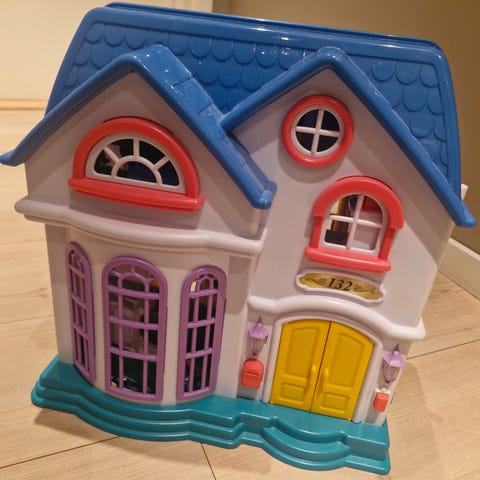 Loll hus med lolldukker og masse loll tilbehør😊Heisen går opp og ned.Dusjen lyser og doen lager lyd.Fin julegave😊