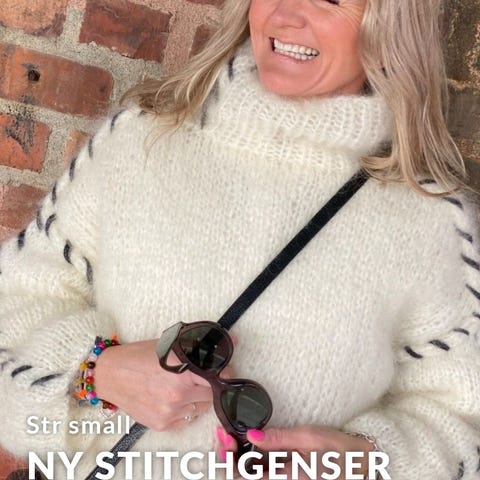 Nystrikket Stitch-genser str small. Oversized, og kan fint brukes som str medium også. Strikket i en tråd Faerytale (alpakkaull), og en tråd Kidsilk Erle (silke & mohair). Kvalitetsgarn fra Sandnes og Du store alpakka. Myk, varm og lett genser. Genseren måler 55 cm fra underarm til underarm, og den er ca 74 cm lang. Kan sendes med PostNord for 69 kroner ved forskuddsbetaling/Vipps 🌸