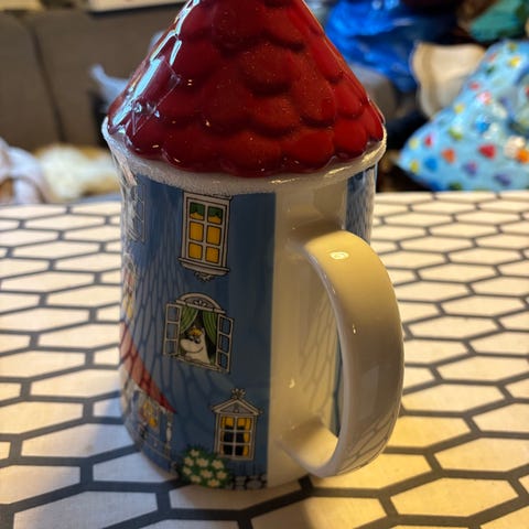 JUL. 2stk. HØY Nisse kopp fra Angie Anderson. HØY Snømann kopp.