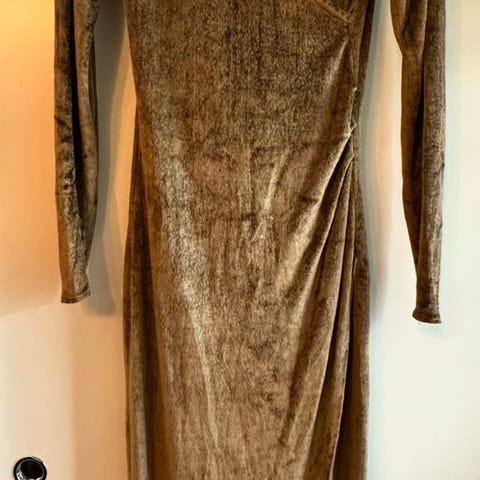 Fin trikotasje kjole, lekker fasong, to lag, svart og hvit, sitter perfekt på kroppen og understeker kroppsfigur. Størrelse S (36-38).
