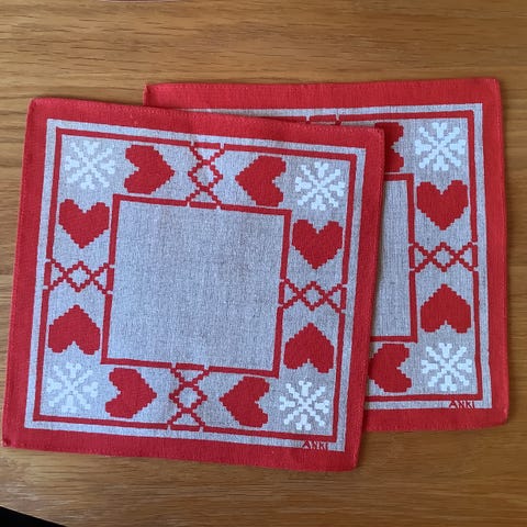 Duk, serviett, brikke, jul, hjerte, sløyfe, misteltein, julestemning, nostalgisk jul.