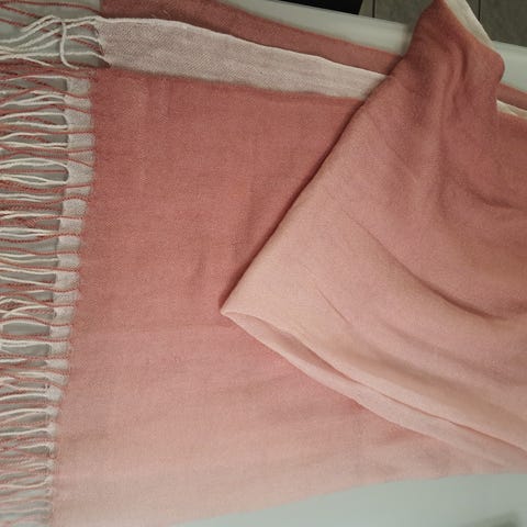 Nytt rosa ullskjerf og passende semska hansker i nydelig rosa farge. Hanskene er str. L men passer også str. M. Hanskene er furet med merinoull og skinnet er nydelig fin myk semsket skinn. Fin gave!