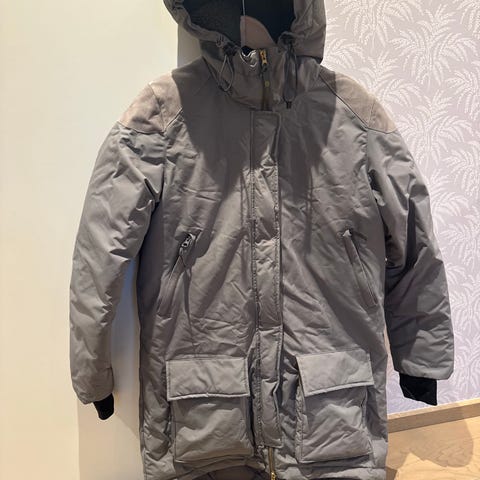 Fleischer Couture vinterjakke i størrelse S for kvinner. Jakken har grønn farge og er designet for å gi varme og beskyttelse mot kulde. Den har hette med pelskant og er laget for å brukes som ytterplagg i kaldt vær.