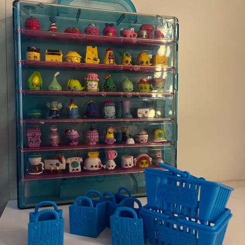 En butikk, to samlekasser, en handlevogn, ulike typer handlekurver, mange bæreposer osv.
