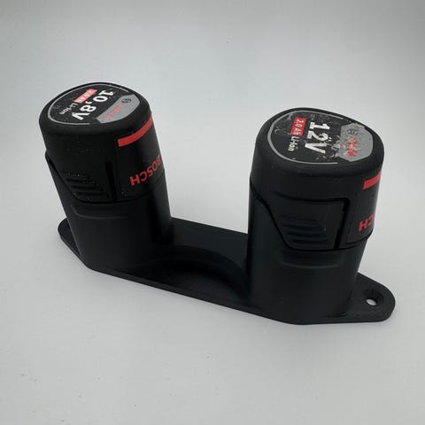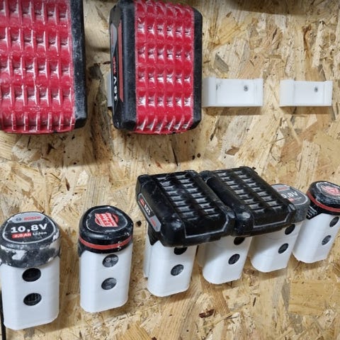 Organiser garasjen, boden eller arbeidsbilen med solide 3D-printede holdere til batterier og verktøy. Perfekt både for vegg, under hyller og arbeidsbil!