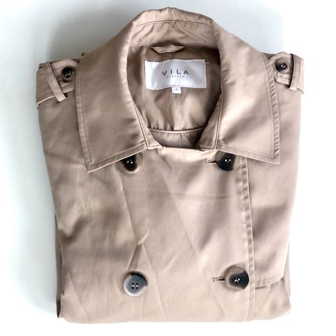 Vintage lang trenchcoat i blush-beige farge.