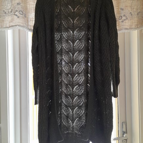 Selger helt ny svart cardigan (uten bluse) med hullmønster og lange ermer fra Cellbes for 320 kr.