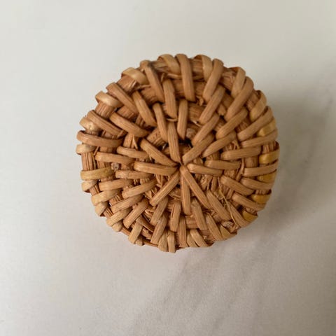 Liten boks i kurv materiale, med lokk. Hel og fin. 7 cm høy, 10 cm i diameter. Fin til smykker og annet. Kan sendes mot porto. Betales med vipps.